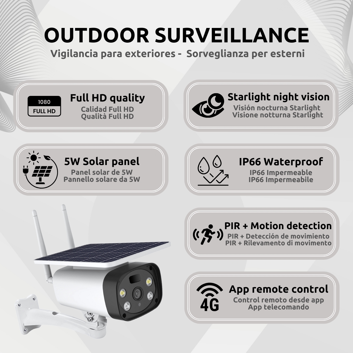 • Vigilancia remota: conexión 4G para control desde el móvil sin depender de WiFi