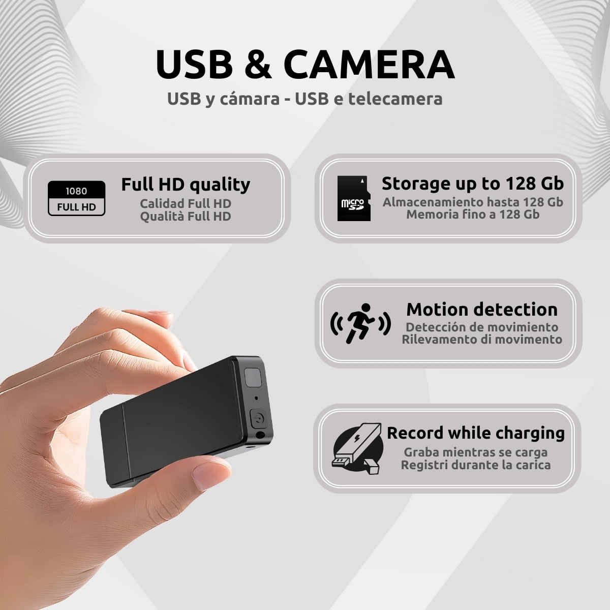 Cámara oculta Full HD con diseño USB, grabación por movimiento y carga continua. Ideal para vigilancia discreta y efectiva.
